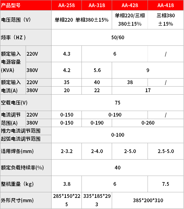 ● 单管IGBT逆变技术,电弧稳、飞溅小、高效节能